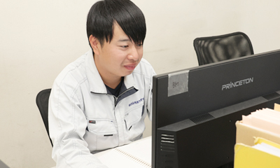 入社してから6年間外壁塗装を担当していますが、未だにはじめてのケースに出合うことも多々あります。初めて行う工事の場合は分からないことも多いので、会社にある資料や専門サイトを使って調べる必要があります。いちから調べものをしているときは大変さを感じることもありますが、段々と分かってきてうまく計画が立てられたときは、この仕事の面白味を感じます。